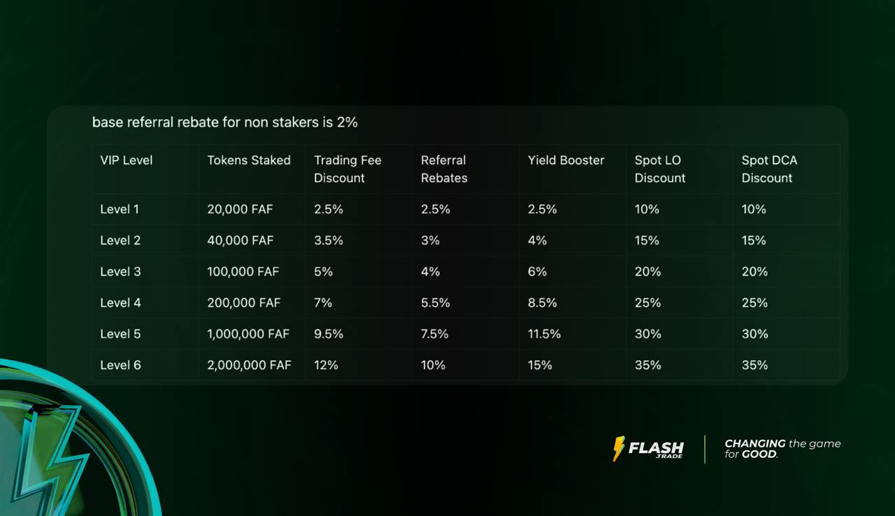 $FAF 在平台上的实用功能取决于您的 VIP 等级,该等级通过质押 $FAF 维持。您质押的 $FAF 数量越高,您的 VIP 等级就越高,从而获得更高的实用功能和特权。