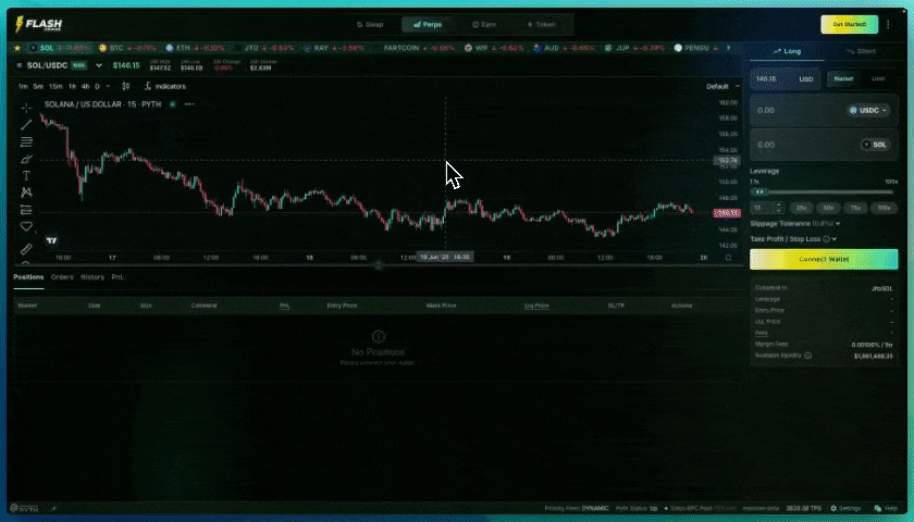 La liquidez se agrega a los pools de Flash Trade por proveedores de liquidez (LPs) que depositan activos para facilitar el trading. Cada operación que pasa a través del protocolo Flash genera comisiones dinámicas, y los LPs ganan su participación proporcional de estos ingresos mientras sirven como contraparte de todas las posiciones de traders.